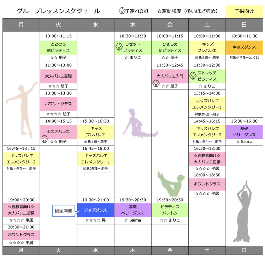 ベリーダンス、ジャズダンス、バレトンと多種多様!